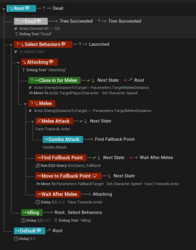The enemy behaviour is a state tree from the same enemy template. I used it as a base, removed what I didnt need and modified some parts to make it work with the ghoul.